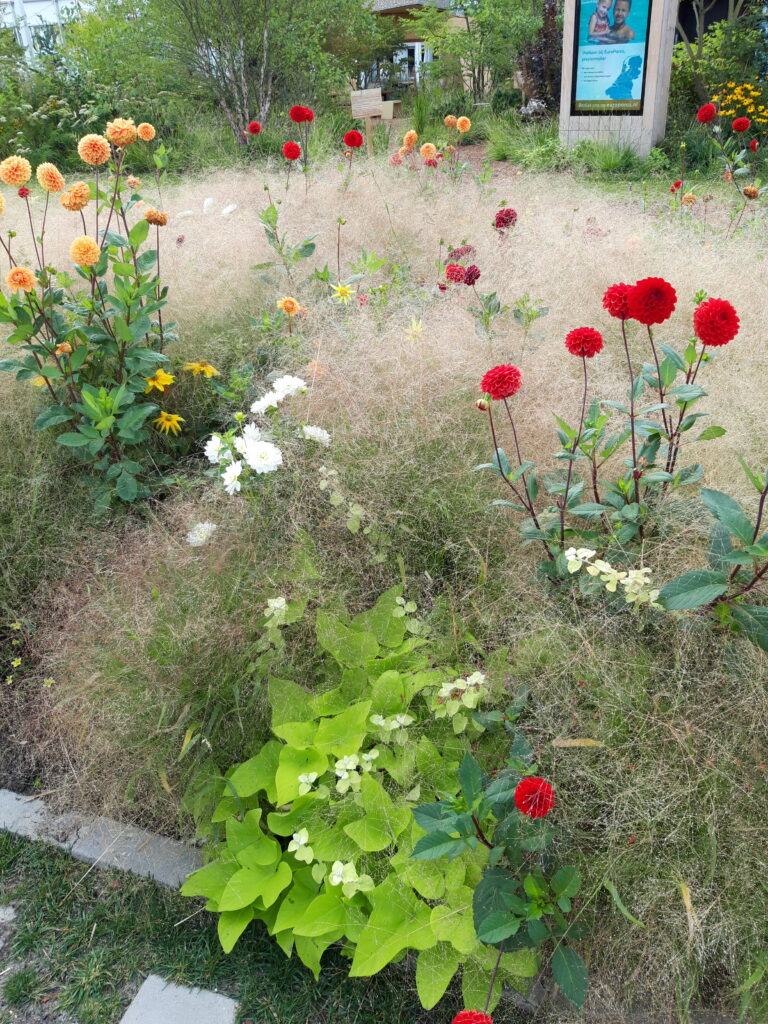 Auf der Green Island gibt es außer einem Wald viele Garten- und Blumenbeete, die auch ökologisch ausgerichtet sind: z.B. Wasserrückhaltebecken, Mischkulturen.