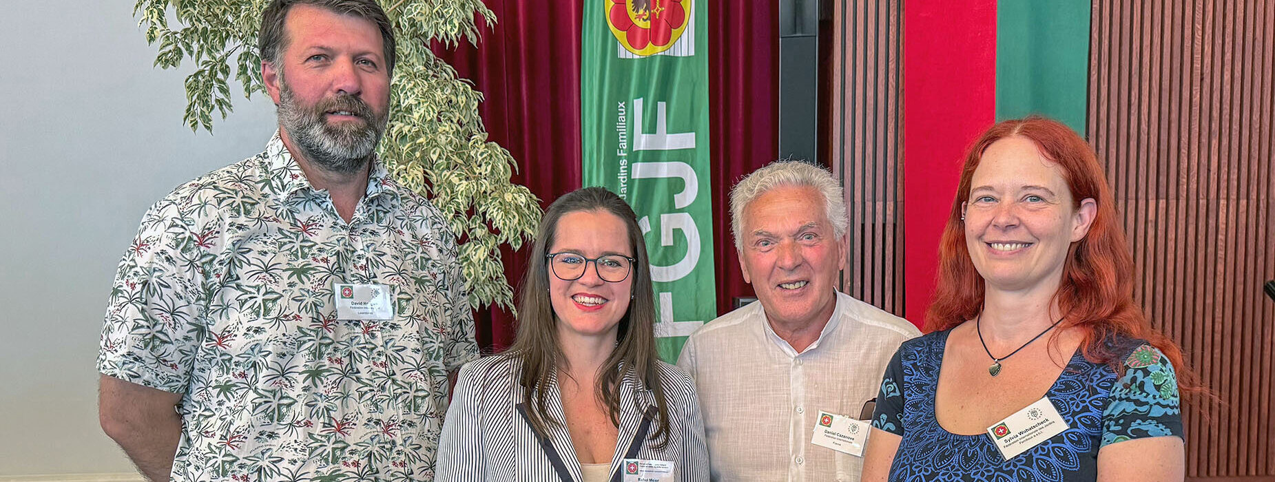 De gauche à droite : David Hengen (CTF), Rahel Meier (Présidente FSJF), Daniel Cazanove (Fédération Française), Sylvia Wohatschek (Secrétaire générale de la Fédération Internationale des Jardins Familiaux).