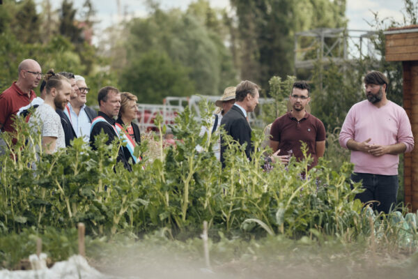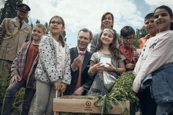 Ensemble avec le Ministre du Travail, Monsieur Georges Engel et la Ministre de l’Environnement, du Climat et du Développement durable, Madame Joëlle Welfring, le Grand-Duc s’est rendu aux jardins communautaires pour s’informer sur ce projet durable, citoyen et participatif.