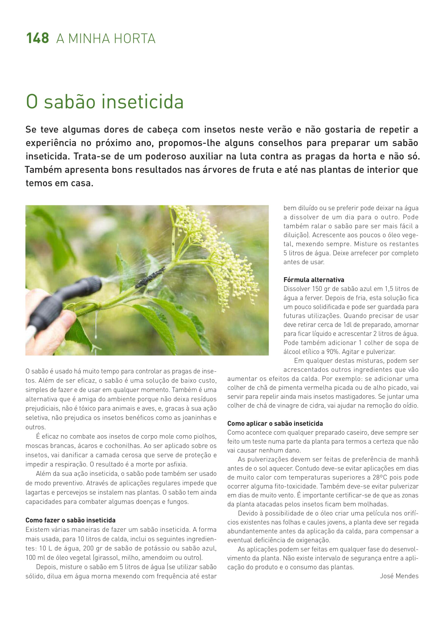 Dissoudre 150 g de savon bleu dans 1,5 l d’eau bouillant. Dès qu’elle refroidi, cette solution devient un tout petit peu solidifié et elle peut être stockée pour des utilisations postérieures. Lors que vous en aurez besoin, vous devez prendre envers un décilitre de cette solution et la réchauffer, afin qu’elle devienne liquide et rajouter deux litres d’eau. Vous pouvez aussi rajouter une cuillère (de soupe) d’alcool éthylique à 90 %. Agitez et pulvérisez.